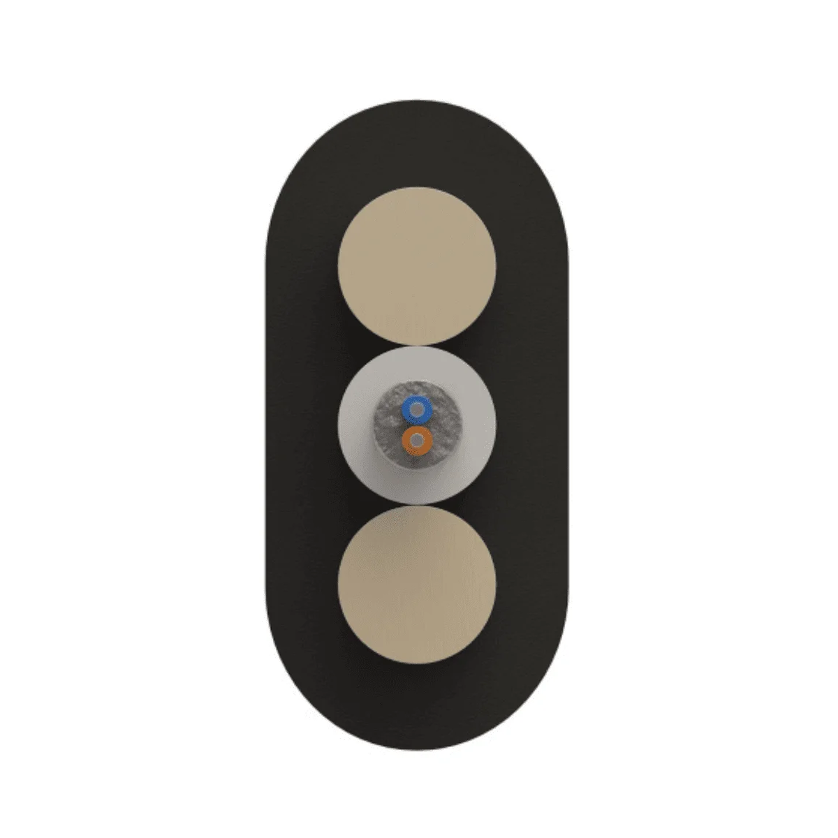 Плоский оптический кабель с оптическим модулем и стеклопластиковыми прутками, расположенными на общей оси, для компактной и удобной прокладки. Наружная оболочка из полиэтилена защищает кабель от влаги и механических воздействий.